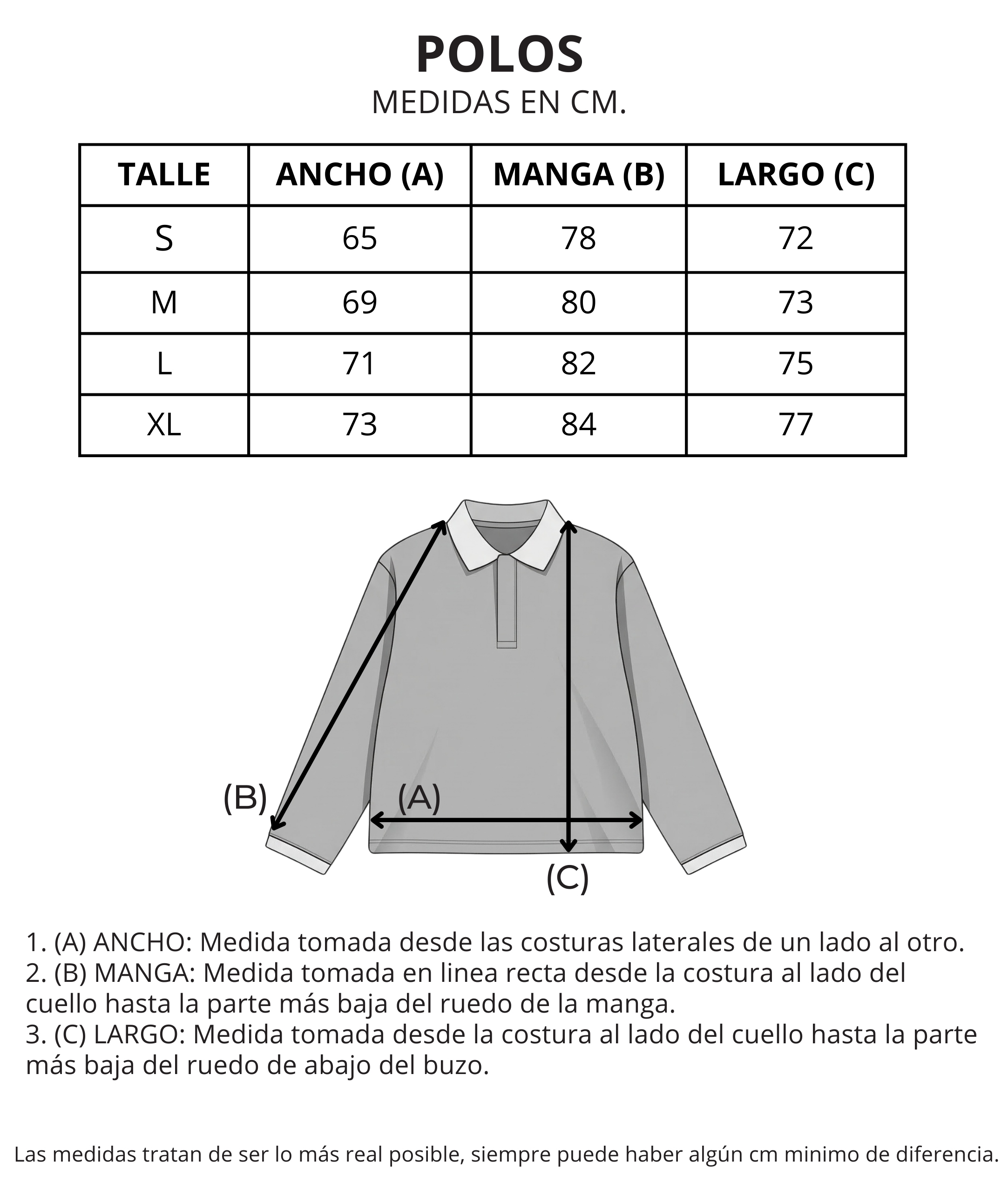 Polo confeccionado en rústico pesado 100% algodón, pensado para ofrecer firmeza y durabilidad. La tela mantiene el calce con el uso, no achica ni destiñe, acompañando el ritmo del día a día sin perder su forma.