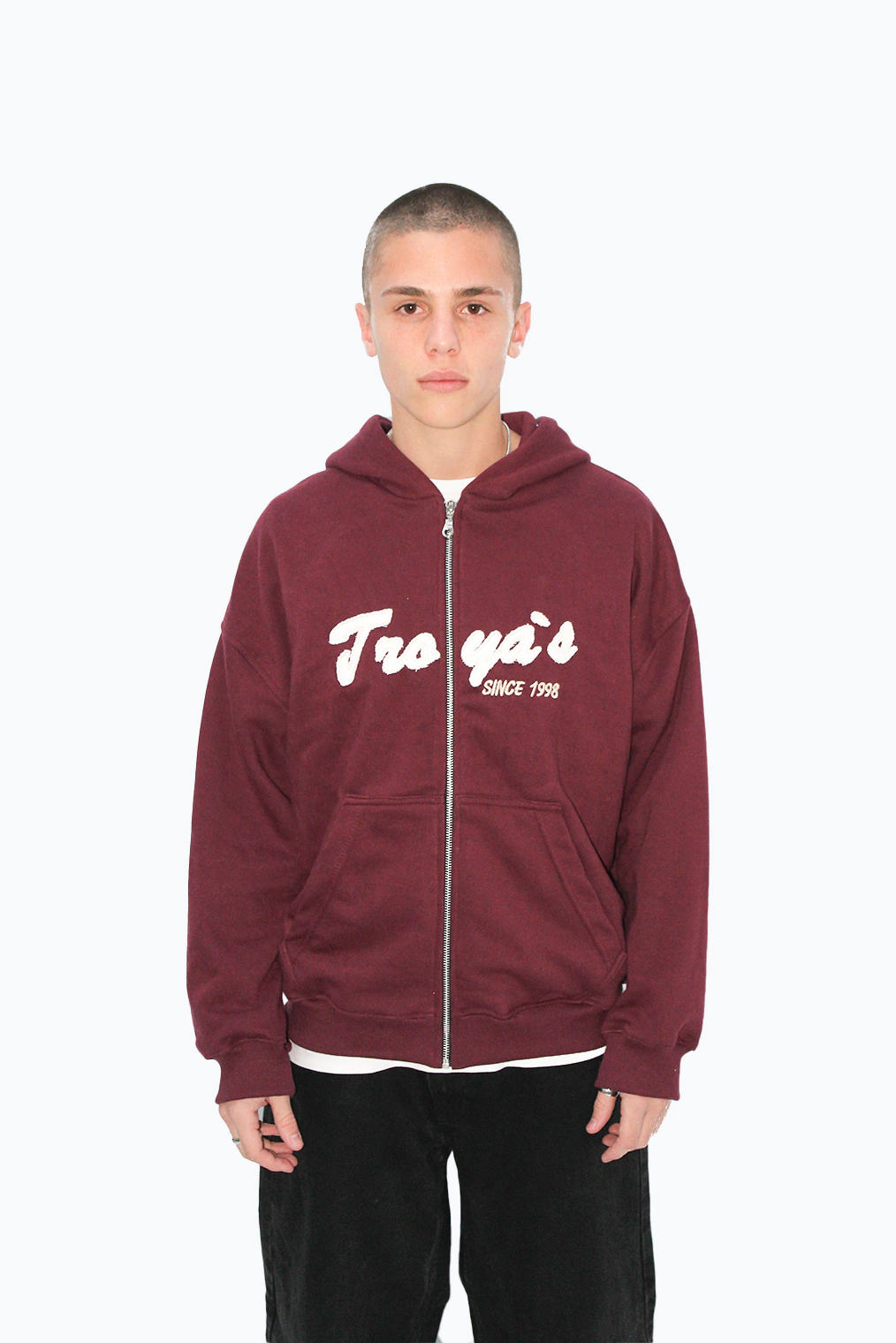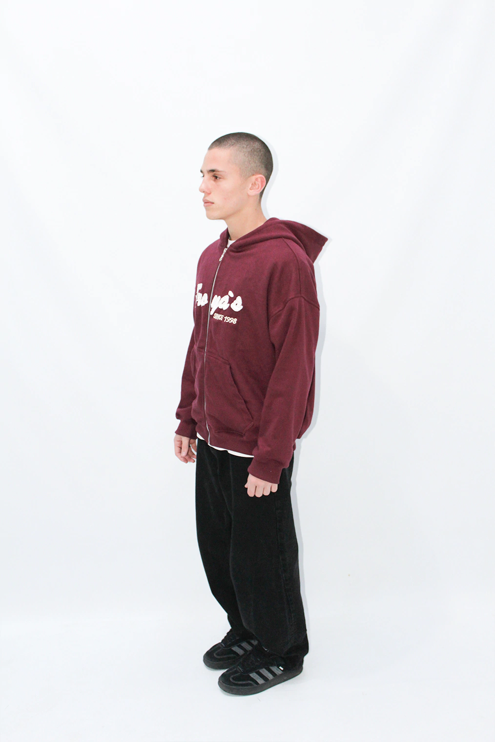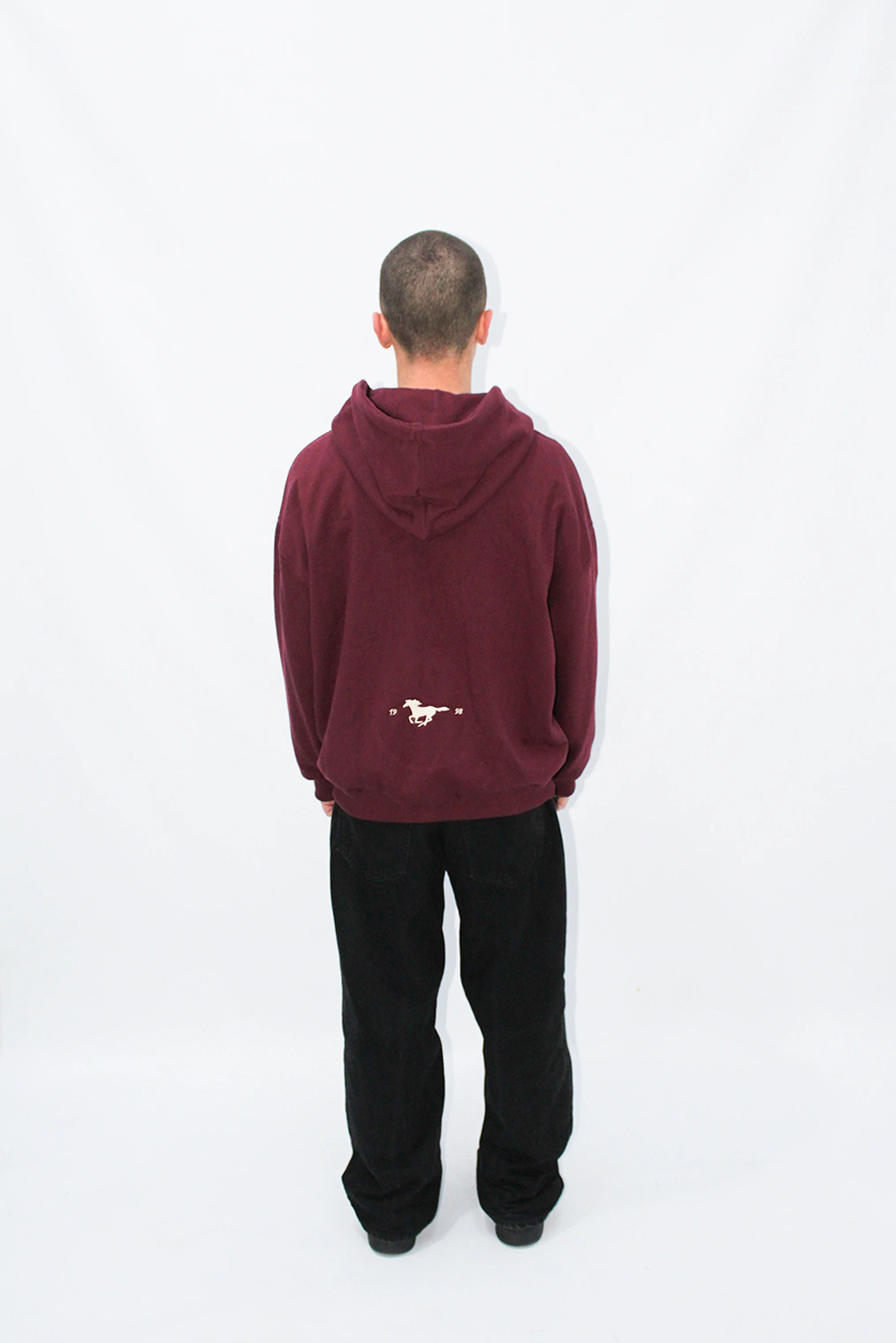 Frente bordado con un aplique en tela de rústico y espalda con un detalle también bordado.